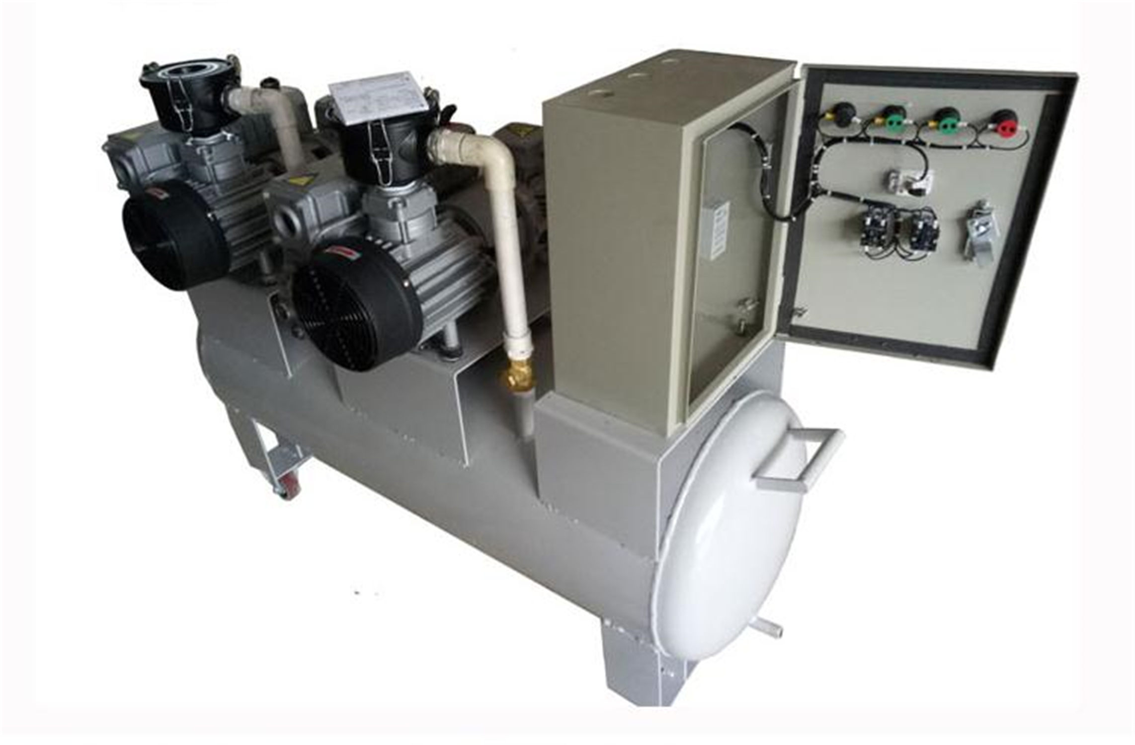 040單罐雙泵移動(dòng)系統(tǒng)方式一般是根據(jù)客戶使用方法,真空緩沖的安裝方式來劃分,一般負(fù)壓站的真空緩沖罐超過0.6立方安裝在固定的設(shè)備房內(nèi),不經(jīng)常移動(dòng)則做成固定式負(fù)壓站緩沖罐小于0.6立方臥式安裝負(fù)壓站需要多工位作業(yè),則做成移動(dòng)式負(fù)壓站。